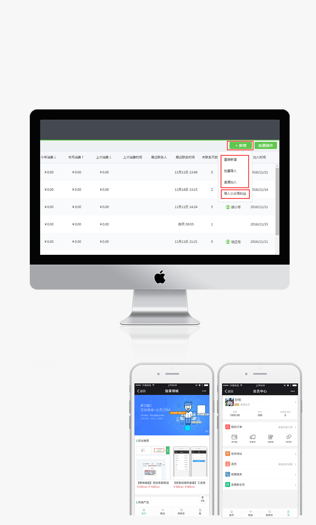線上線下會(huì)員一體管理,服務(wù)號(hào)粉絲一鍵導(dǎo)入會(huì)員CRM,關(guān)注即會(huì)員,多維會(huì)員檔案庫(kù),會(huì)員積分,會(huì)員儲(chǔ)值,會(huì)員跟進(jìn)、會(huì)員消費(fèi)記