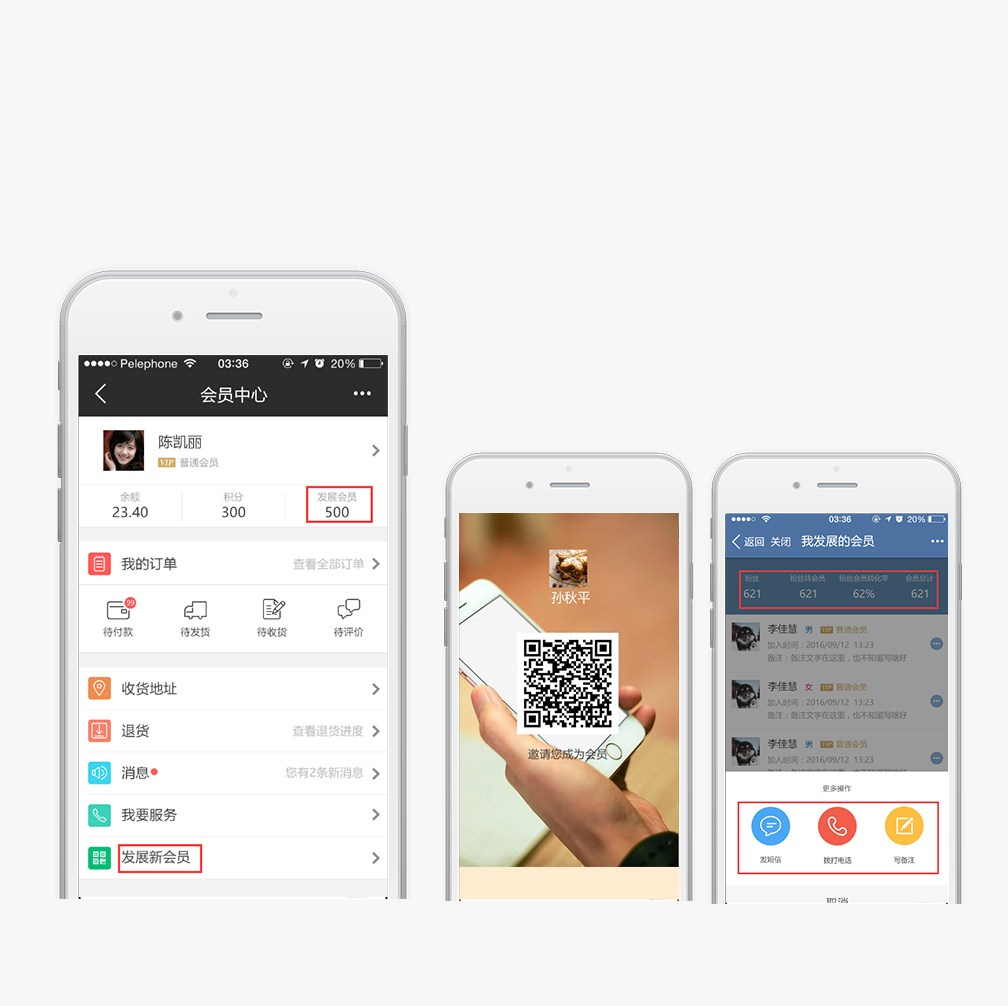 誰(shuí)推廣與誰(shuí)相關(guān):實(shí)時(shí)關(guān)注“我發(fā)展的會(huì)員”數(shù)據(jù),與會(huì)員電話、短信溝通便捷